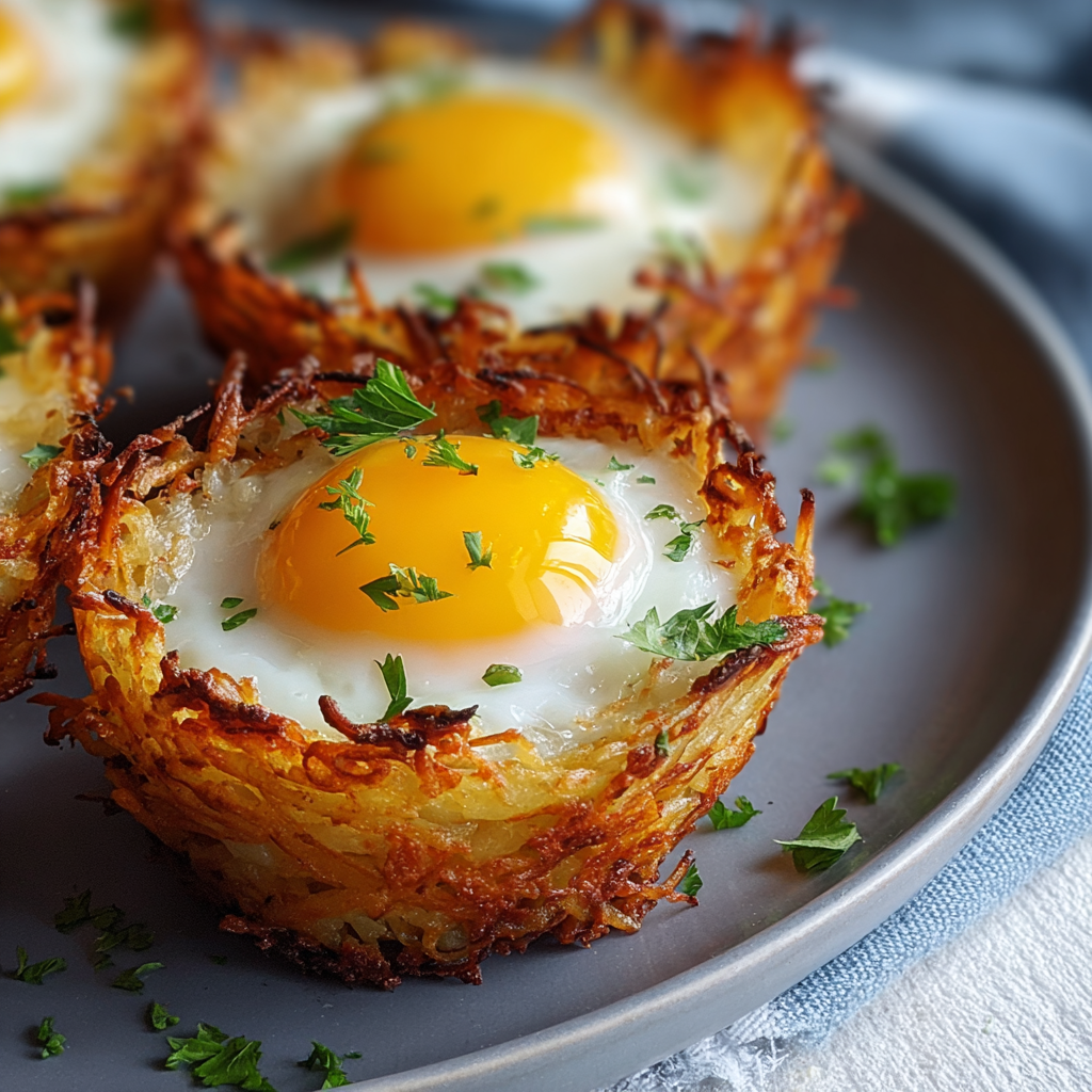 Eggs in Crispy Hash Brown Baskets