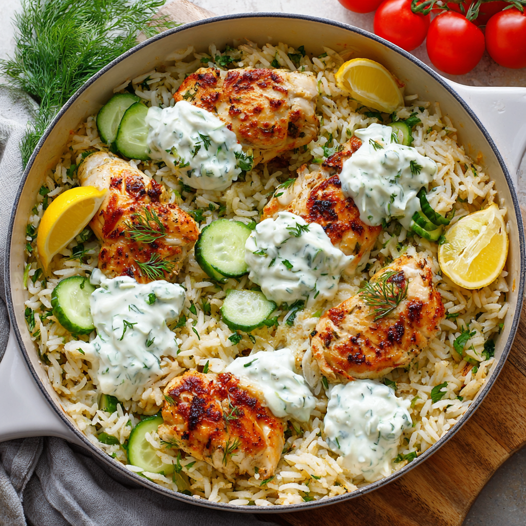Dump and Bake Chicken Tzatziki with Rice